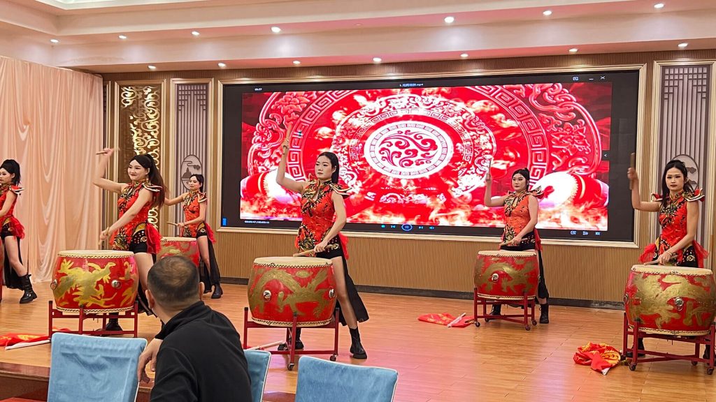 年会在激昂磅礴的 《龙腾扇鼓》 中震撼开场。鼓声如时代脉搏,舞姿似奋进身影,瞬间点燃全场热情。